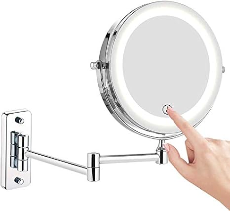 Amazon Com Wall Mounted Makeup Mirror 7 Inch Double Sided Vanity Mirror With 10x Magnification And Touch Button Adjustable Led Light Swivel Extendable For Bathroom Bedroom Shaving Chrome