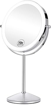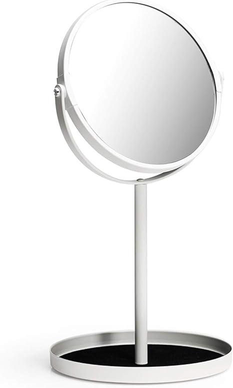 Magnification side makes it easy to get an up close look and those hard to see places to perfectly apply your makeup and perfect those eyebrows The vanity mirror size is great for vanitys dressers and office desks. Zadro Two-Sided Swivel Vanity Mirror - 1X 10X Magnification. Click here for the best price on Amazon.