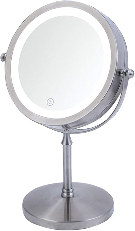 Amazon Com Lighted Makeup Mirror Crafts Llc Makeup Mirror Compact Design Swivel Magnifying Mirror 1x 5x 360 Electroplated Sand Nickel Furniture Decor