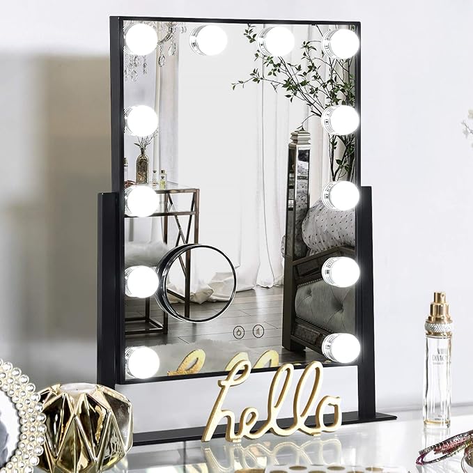 Amazon Com Hollywood Vanity Mirror With Lights 3 Color Lighting Modes Lighted Makeup Mirror Touch Control 12 Led Bulbs Dimmable Large Desk Mirror 25 Tilt Free Standing Tabletop Light Up Beauty Mirrors White Beauty