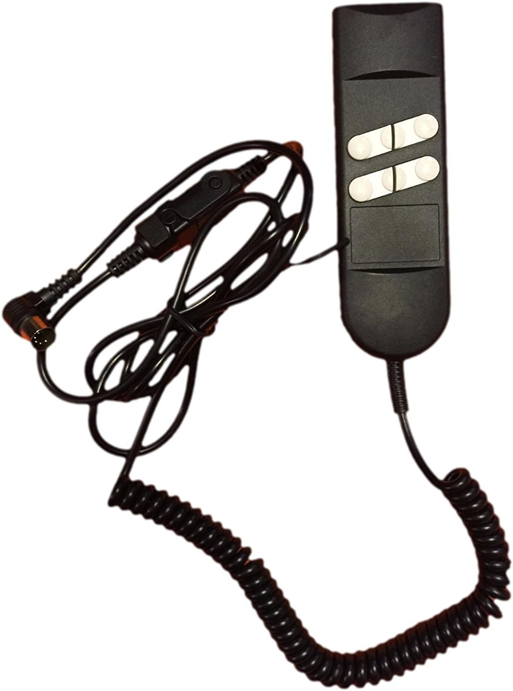 Fruhdi 2 Button 5 Pin Prong Remote Handset Controller Hand Control with USB and Backlight for Lift Chairs Power Recliners Brand. Dewert Pride Hand Control 5 pin. This hand control has a long black housing with 6 buttons.