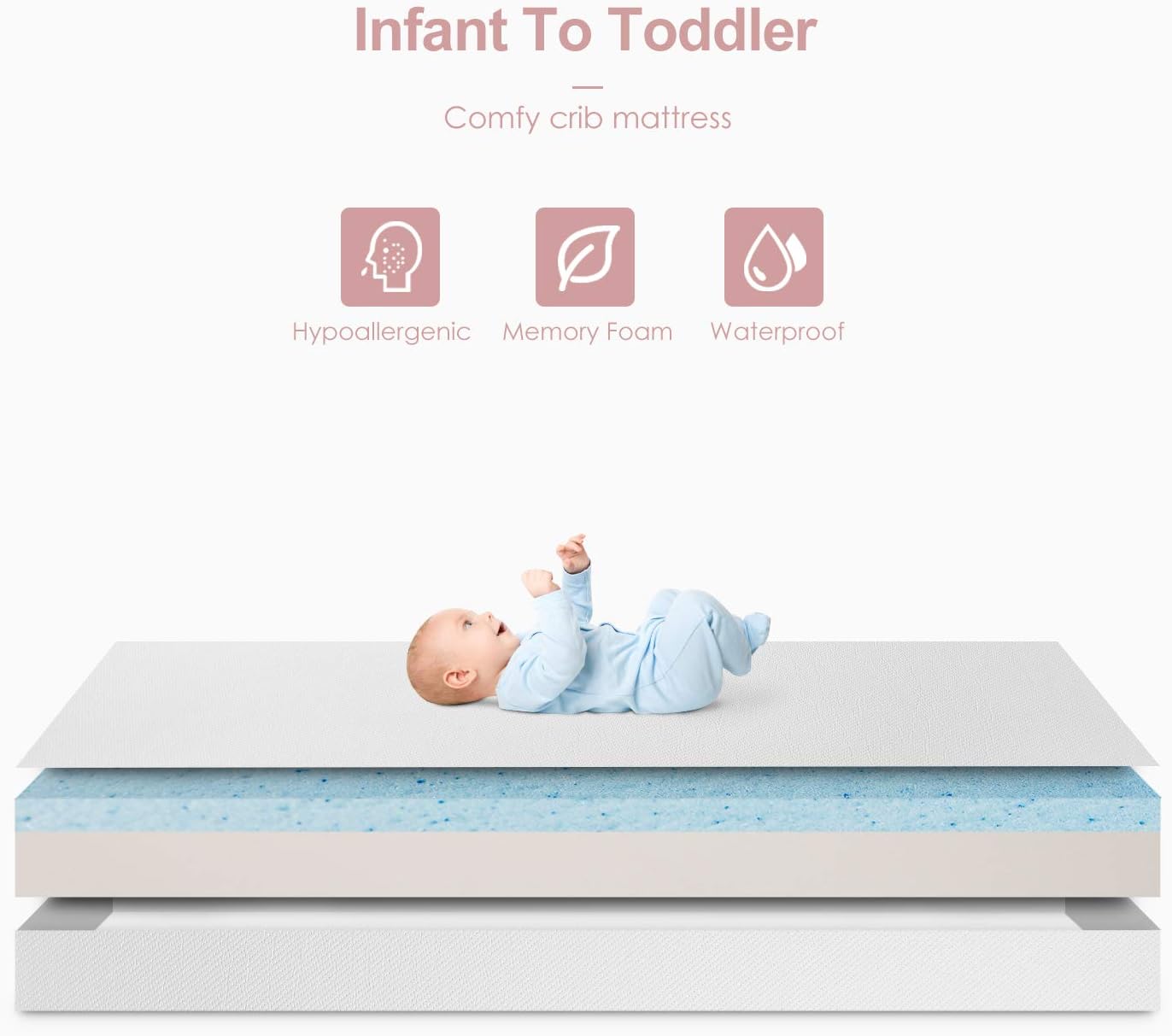 Milliard Hypoallergenic Baby Crib Mattress and Toddler Bed Mattress with 100% Waterproof Cover - 27.5'x52'x4.75'. This baby mattress features a unique blend of firmness and comfort that is perfect for babies and toddlers. You child will sleep better with reduced tossing and turning on our unique memory foam mattress that is naturally hypoallergenic and anti-microbial. Check our ranking below.