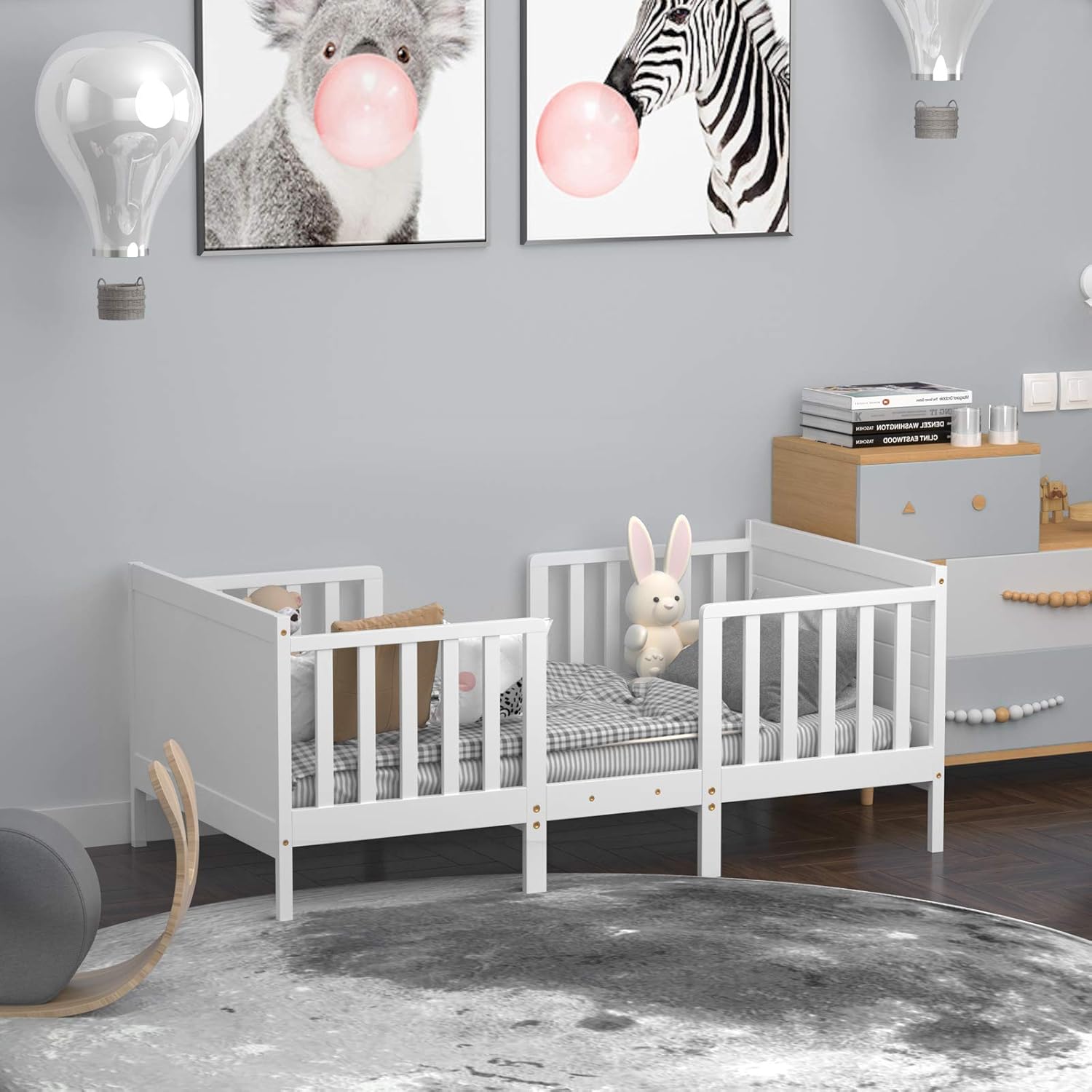 Amazon Com Costzon 2 In 1 Convertible Toddler Bed Classic Wood Kids Bed W 2 Side Guardrails Headboard Footboard For Extra Safety Children Bed Frame Convert To Two Chairs Sofas Gift For Boys