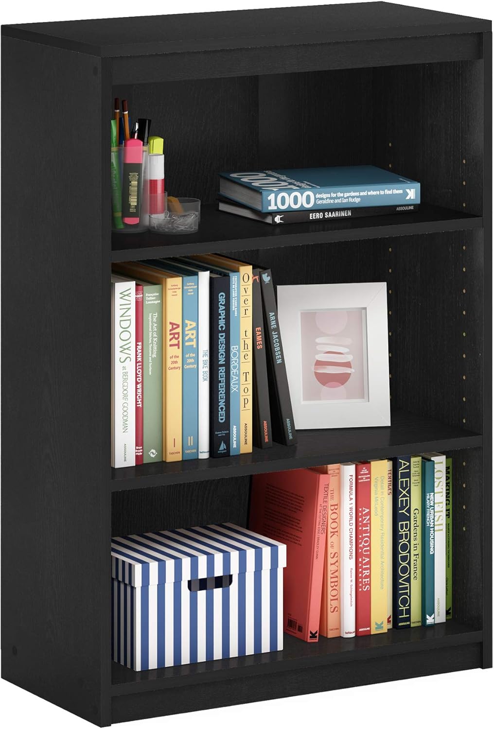 Furinno Gruen 35 9 In Blackwood 3 Shelf Standard Bookcase With Adjustable Shelves 20107bkw The Home Depot