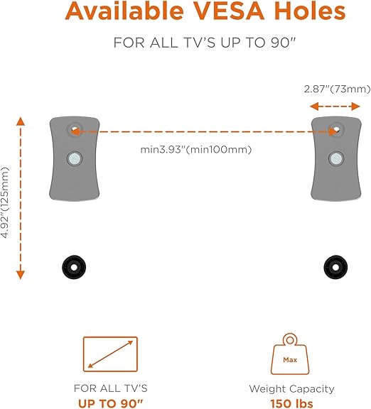 TV Sizes Up to 150 lbs. 45 out of 5 stars with 41 reviews. 5-12 degrees Profile 24in-143in.