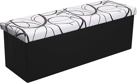 Amazon Com Otto Ben Folding Toy Box Chest With Memory Foam Seat Faux Leather Trunk Bedroom Ottomans Bench End Table 45 Inch Swirl White Furniture Decor
