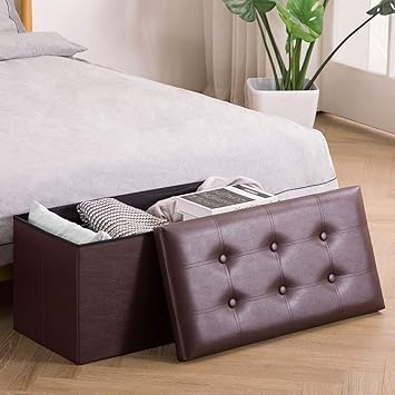 Amazon Com Youdesure Folding Storage Ottoman Bench Faux Leather Footrest For Living Room End Of Bed Bench With Padded Seat Holds Up To 350lbs Brown Furniture Decor